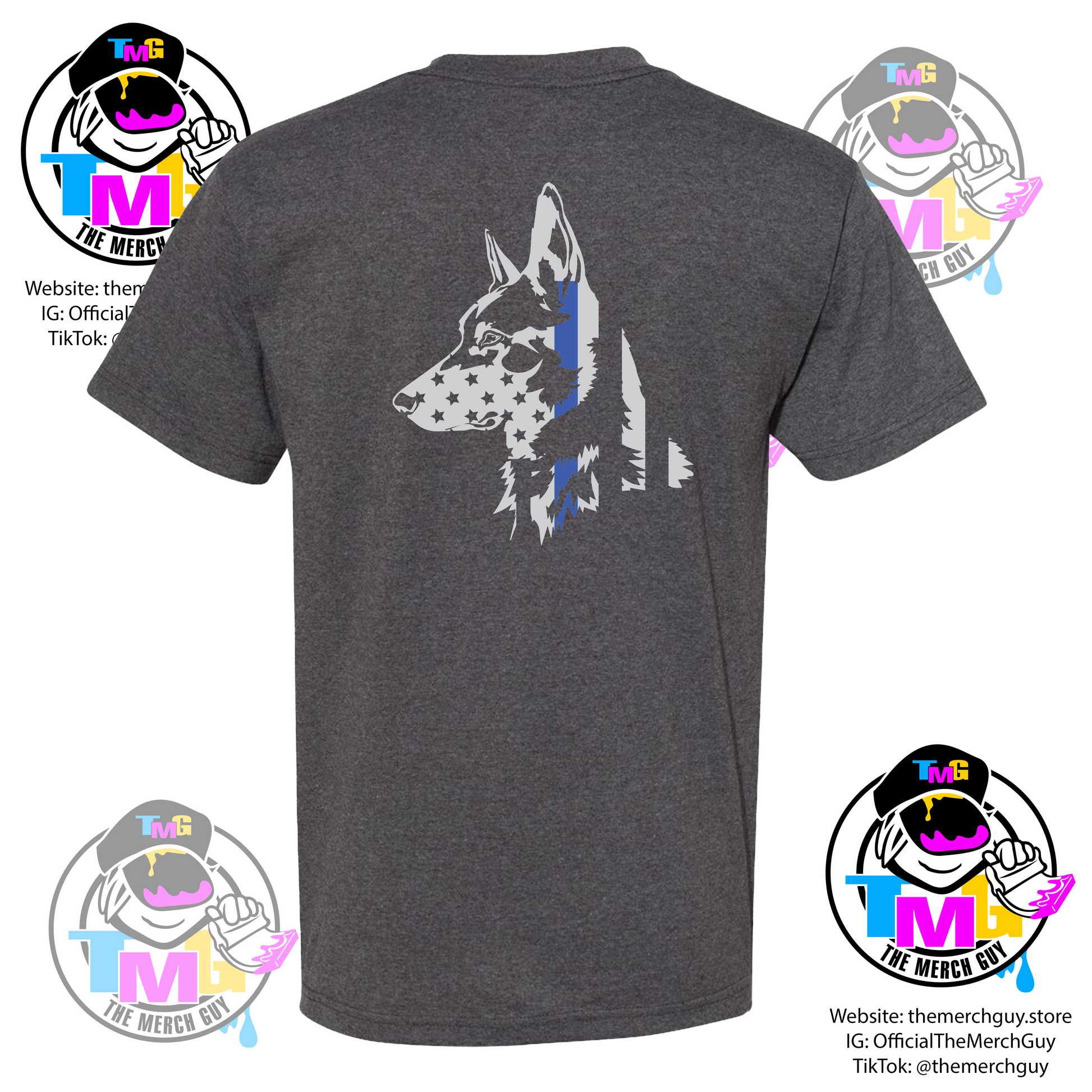 This item showcases a Belgian Malinois dog head and is screen printed on the back with K9 on the front.